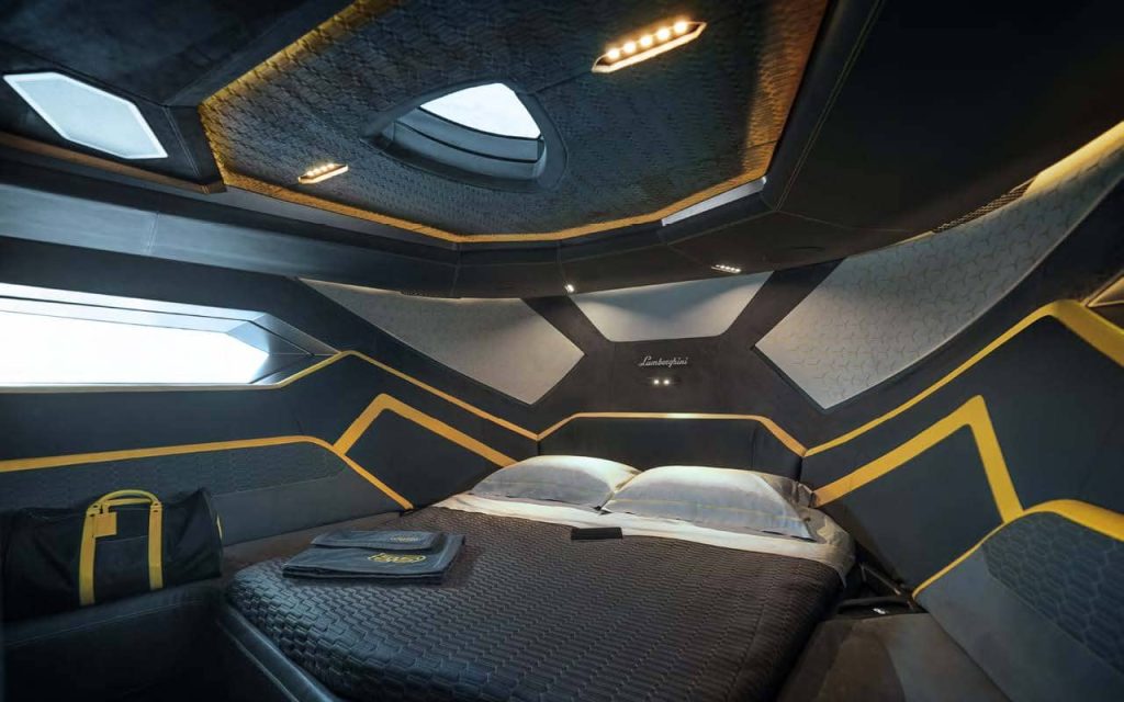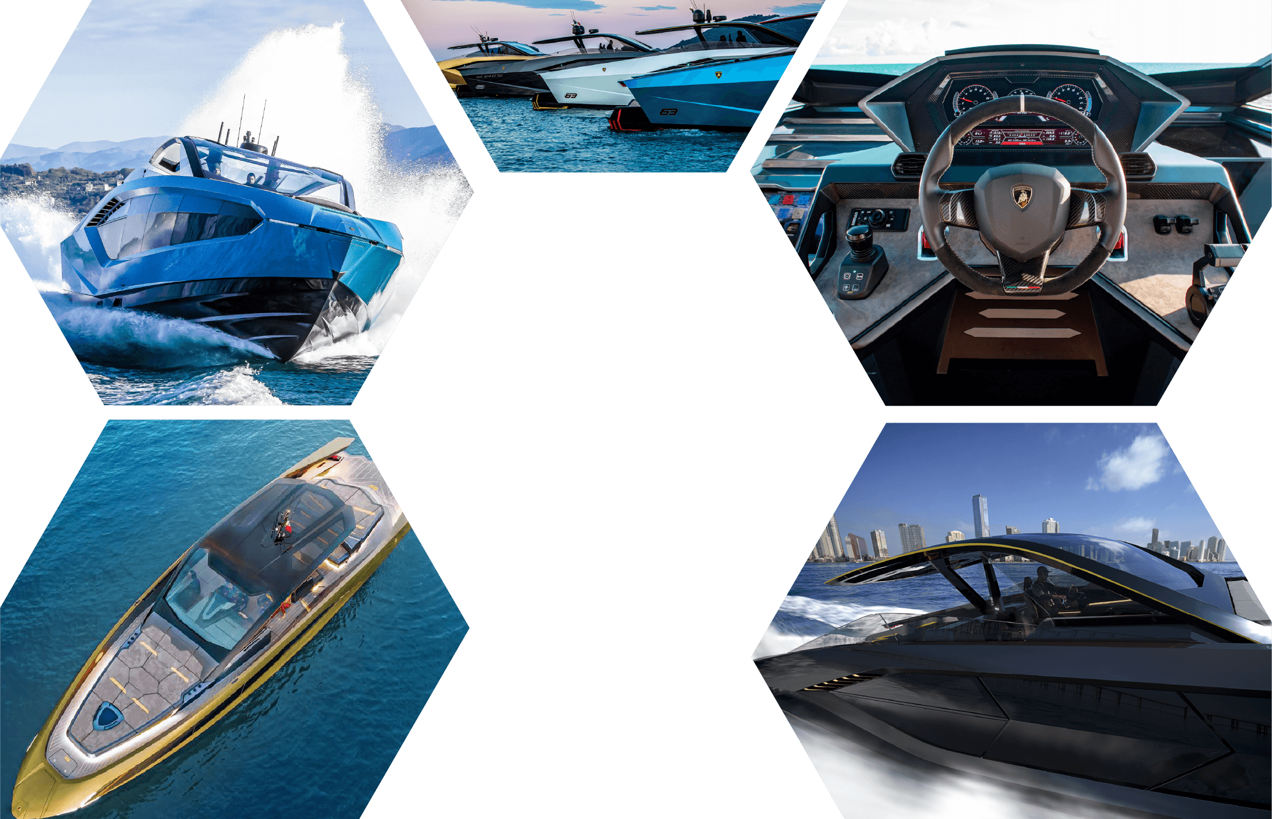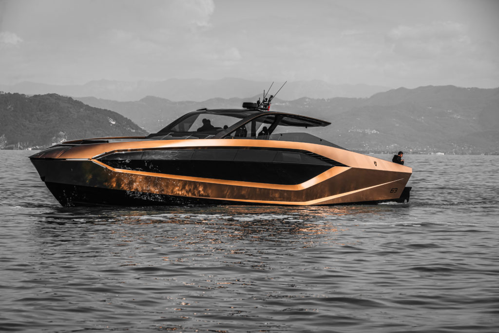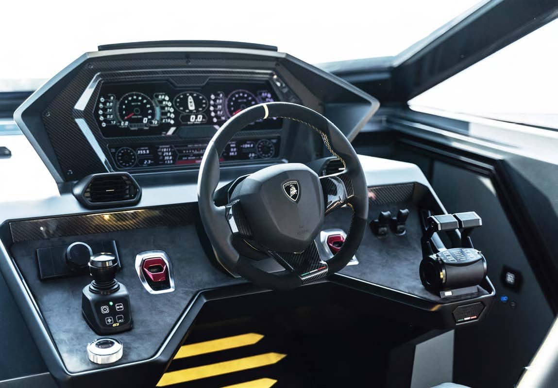 63ノット(約117km/h)の最高速度を実現するツインMAN V12 2000馬力エンジン、そして超軽量ヨットのためのカーボンファイバー構造。「テルツォ・ミッレニオ」と「シアン FKP 37」に着想を得て、ランボルギーニのDNAである「スピード、軽さ、そして紛れもないスタイル」を新たな海の世界へ導きます。